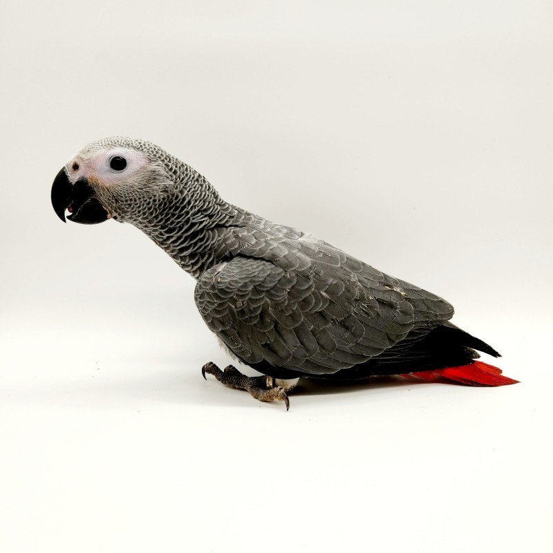 Le gris du Gabon est déjà reconnu comme l’un des perroquets les plus intelligents, et Alpha illustre parfaitement cette capacité avec une grande curiosité et une forte envie d’interaction.